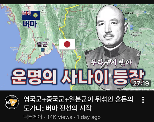 태평양전쟁을 주로 다루는 이 채널에서 버마 전선을 언제 다루나 했다. 기다리고 있었다구!!